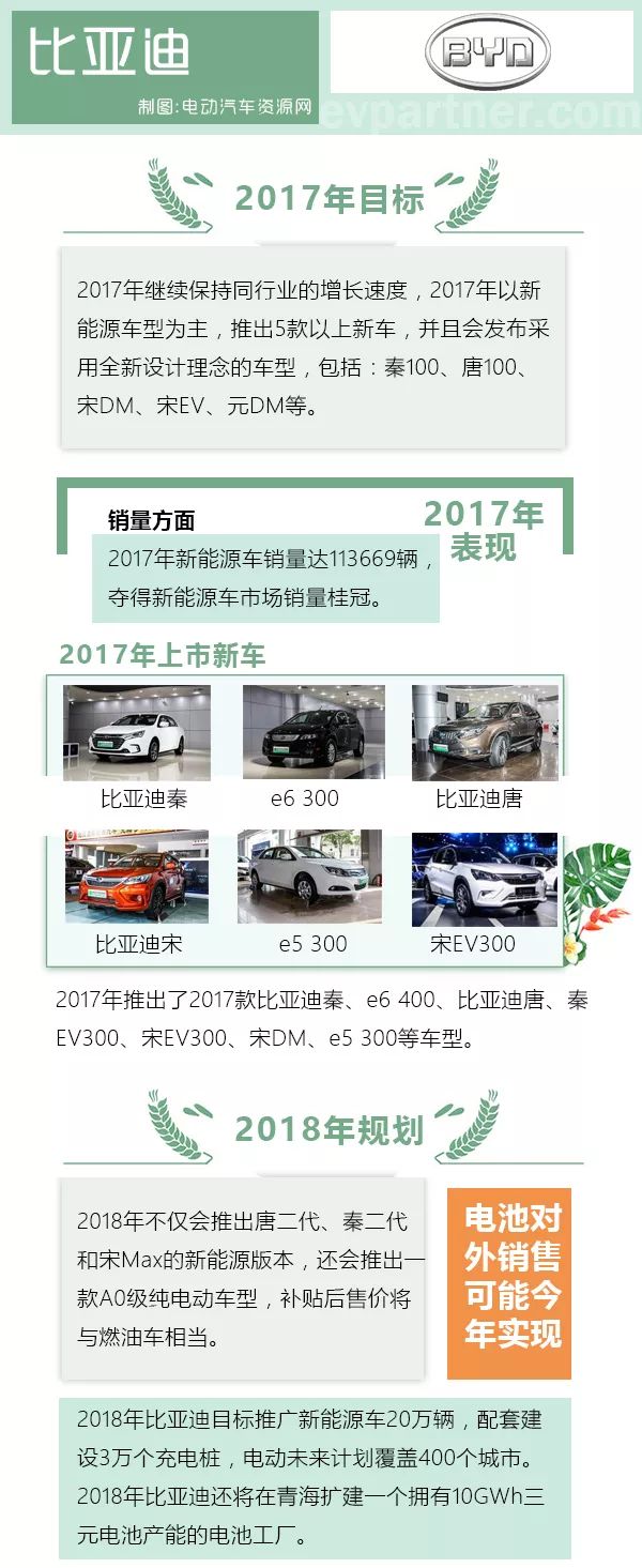 十大新能源車企2017年市場表現(xiàn)及2018年規(guī)劃