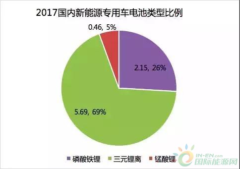在2017全年的動力電池出貨中,磷酸鐵鋰電池占比50%,三元鋰電池占比45%,錳酸鋰電池占比4%,鈦酸鋰電池占比1%。