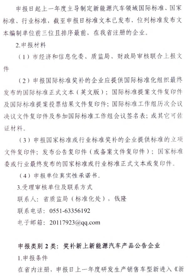 根據(jù)合肥市新能源汽車產(chǎn)業(yè)發(fā)展領(lǐng)導(dǎo)小組文件,現(xiàn)將《安徽省發(fā)展改革委安徽省經(jīng)濟(jì)和信息化委安徽省財(cái)政廳安徽省質(zhì)監(jiān)局關(guān)于做好支持新能源汽車產(chǎn)業(yè)發(fā)展和推廣應(yīng)用若干政策有關(guān)工作的通知》(皖發(fā)改產(chǎn)業(yè)函〔2018〕103號)轉(zhuǎn)發(fā)給你們,請各相關(guān)企業(yè)按照通知中《支持新能源汽車產(chǎn)業(yè)創(chuàng)新發(fā)展和推廣應(yīng)用政策相關(guān)事項(xiàng)申報(bào)細(xì)則》要求,積極聯(lián)系市級審核單位,按時(shí)提交申報(bào)材料并抄送市科技局,并填寫附件2,并于3月31日前報(bào)送至市科技局。
