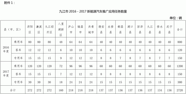 1. 九江市2016-2017新能源汽車推廣應(yīng)用任務(wù)數(shù)量;