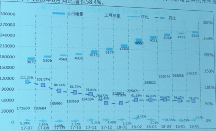 2018年6月較2018年5月新增公共類(lèi)充電樁5520個(gè)。從2017年7月到2018年6月,月均新增公共類(lèi)充電樁約8345個(gè),2018年6月同比增長(zhǎng)58.4%。今年上半年,新增部分的公共充電樁(含專(zhuān)用)同比增長(zhǎng)90.6%,其中符合2015版國(guó)標(biāo)的占比約90%,公交、出租等專(zhuān)用車(chē)輛的電量增長(zhǎng)呈穩(wěn)定上升趨勢(shì)。