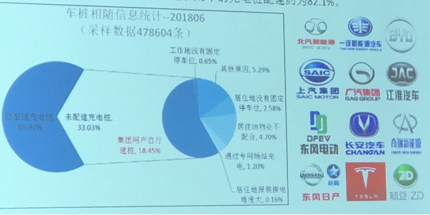 截至2018年6月,通過(guò)聯(lián)盟內(nèi)成員整車(chē)企業(yè)采樣車(chē)樁相隨信息數(shù)據(jù)478604條,其中建設(shè)安裝私人類(lèi)充電樁320499個(gè),整體未配建率約33.03%,其中約18.5%是由于集團(tuán)用戶(hù)采購(gòu)純電動(dòng)轎車(chē)作為出租車(chē)、分時(shí)租賃用車(chē)等運(yùn)營(yíng)專(zhuān)用車(chē)輛而不需要車(chē)企隨車(chē)配建充電設(shè)施所致。另一方面,因私購(gòu)車(chē)的充電樁配建約為82.1%。