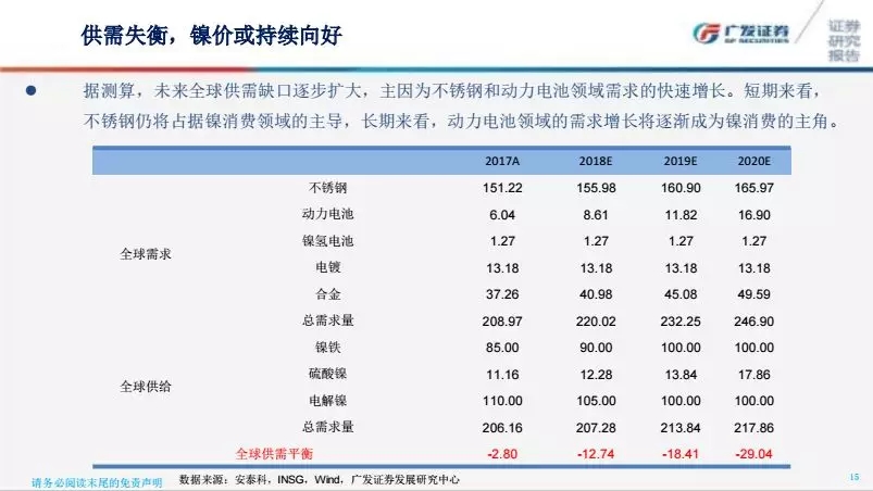 本文是廣發(fā)證券有色金屬行業(yè)首席分析師巨國賢在撲克投資策略論壇上的發(fā)言精編,主題為《電池材料和金屬周期的思考》。巨國賢在發(fā)言中指出:鎳價預(yù)計將持續(xù)向好,主要原因是受不銹鋼和動力電池領(lǐng)域需求的快速增長影響,全球鎳供需缺口逐步擴大。