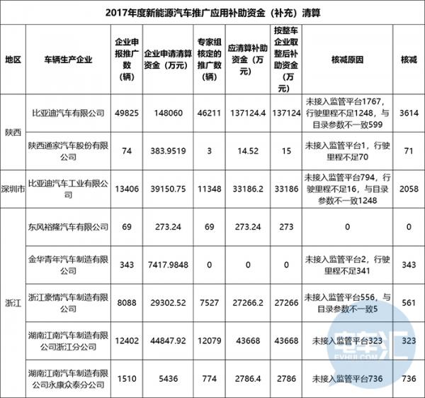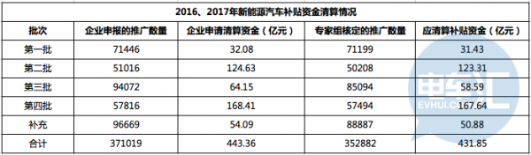 事實(shí)上,據(jù)電車匯調(diào)研,2016年新能源企業(yè)申報(bào)推廣數(shù)為51016輛,企業(yè)申請(qǐng)清單資金為124.63億元,最終專家組核定推廣數(shù)為50208輛,核減808輛不符合補(bǔ)貼要求的車型,2016年第三批應(yīng)清算補(bǔ)助資金為123.33億元。2017年新能源汽車企業(yè)申報(bào)推廣數(shù)為230616輛,申請(qǐng)清算資金為96.01億元,最終專家組核定的推廣數(shù)為161667輛,核減68949輛不符合補(bǔ)貼要求的車型,應(yīng)清算補(bǔ)助資金為66.41億元。