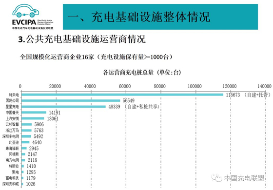 公共充電基礎設施運營商集中度高。截止到2018年9月,28.5萬臺公共充電基礎設施中,特來電運營11.6萬臺、國網(wǎng)運營5.7萬臺、星星充電運營4.8萬臺、中國普天運營1.4萬臺、上汽安悅運營1.3萬臺,這五家運營商占總量的87.1%,其余的運營商占總量的12.9%。