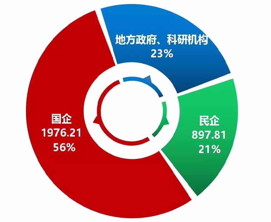 從項目數(shù)量和投資金額來看,國企是能源互聯(lián)網(wǎng)中項目的主力。國企申報項目數(shù)量為157家,金額為1976.21億元,占總金額的56%;民企申報項目數(shù)量為83家,金額為897.81億元,占比21%。其余包括地方政府、科研機構(gòu)等進行的項目申報,占比為23%。