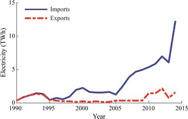 圖6  馬格里布地區(qū)的電力進出口總量