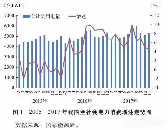 2017年,受經濟增速回升、電能替代步伐加快、夏季氣溫偏高等因素影響,全社會用電量增速回升。2017年1~11月份全社會用電量5.73萬億kWh,同比增長6.5%,比2016年同期提高1.5個百分點。