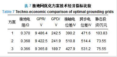 與方案3相比,方案2接地電阻和GPR水平偏高0.6%,GPD水平偏高21.6%,接觸電位差和跨步電位差均在安全限值內(nèi),靜態(tài)投資只相差2萬元,方案2比方案3低2.6%。