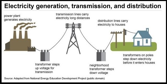 圖1:電網(wǎng):電力的產(chǎn)生、輸送和分配(來源:EIA.gov)