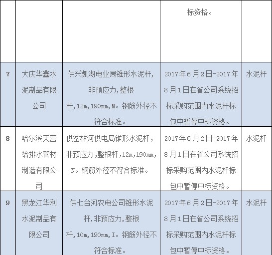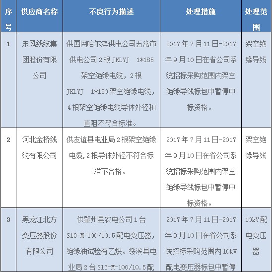 國網(wǎng)(黑龍江)通報(bào)供應(yīng)商不良行為處理情況(2017年7月)
