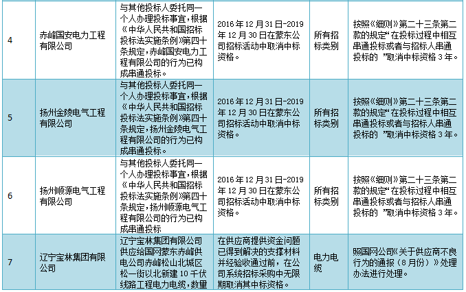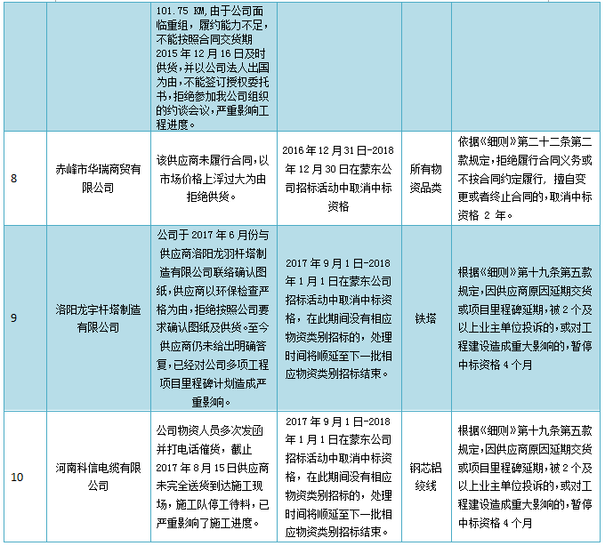 國網(wǎng)蒙東電力公司關(guān)于供應(yīng)商不良行為處理情況的通報(bào)(2017年9月)