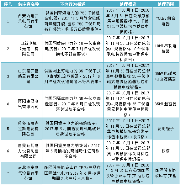 國家電網(wǎng)公司通報2017年9月供應(yīng)商不良行為處理情況