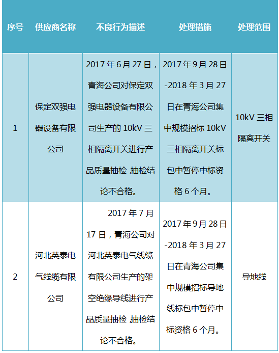 國網(wǎng)青海關(guān)于供應(yīng)商不良行為處理情況的通報(bào)(2017年9月)