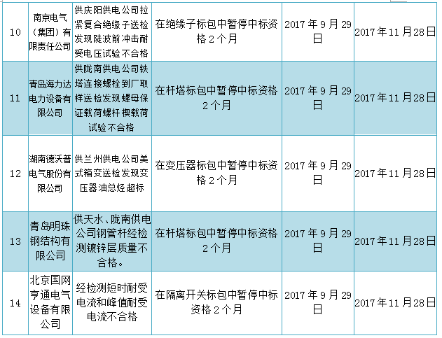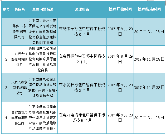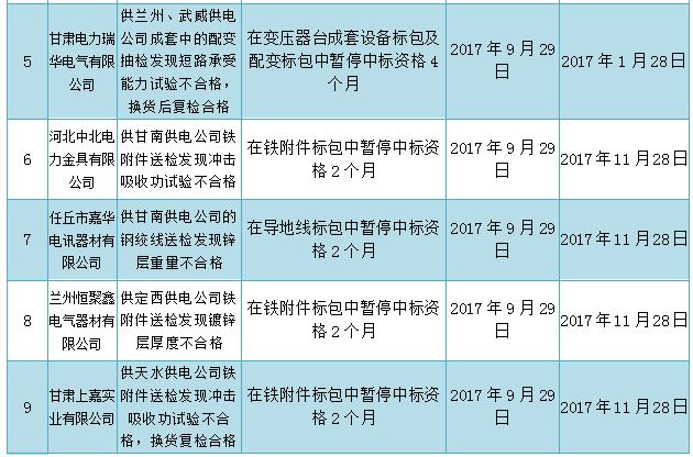 根據(jù)甘肅省電力公司招投標(biāo)管理中心領(lǐng)導(dǎo)小組會(huì)議,本次處理涉及電力電纜、金具等物資,現(xiàn)對(duì)供應(yīng)商不良行為處理如下: