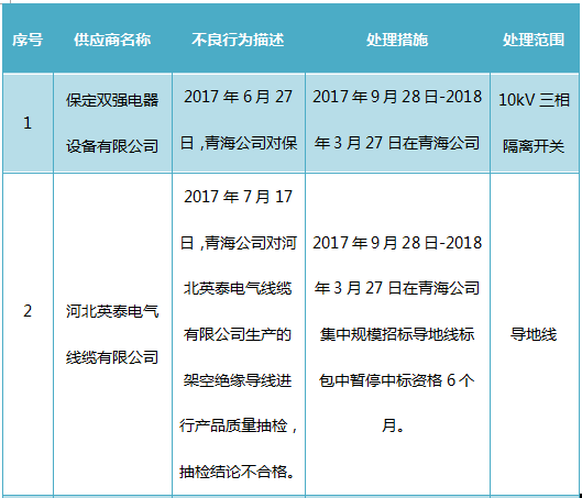 國網(wǎng)青海關(guān)于供應(yīng)商不良行為處理情況的通報(2017年10月)