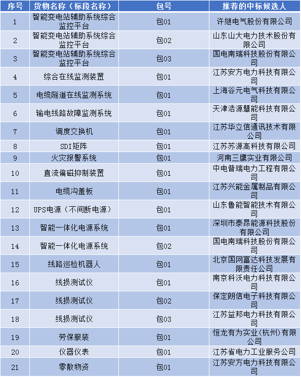 原標(biāo)題:國網(wǎng)江蘇省電力公司2017年第五批物資招標(biāo)采購 推薦的中標(biāo)候選人公示