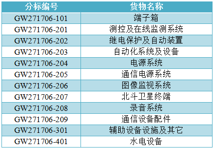 分標(biāo)編號及貨物名稱見下表,貨物需求一覽表單獨(dú)成冊。