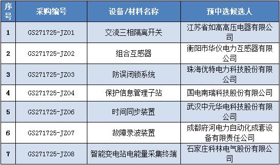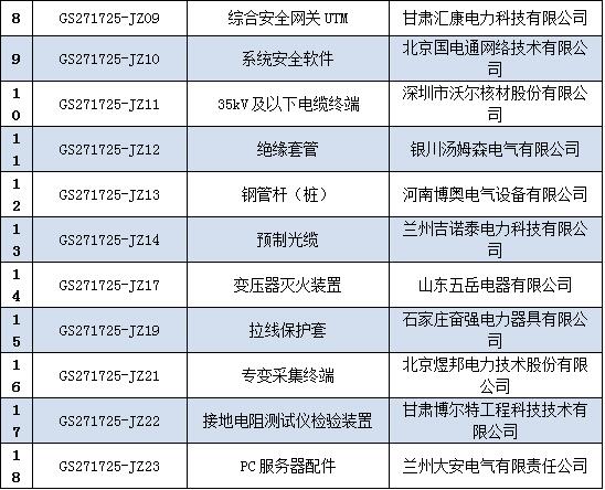 國網(wǎng)甘肅省電力公司2017年第五次物資競爭性談判采購項目中標結果(采購編號:GS271725-JZ)