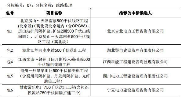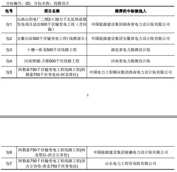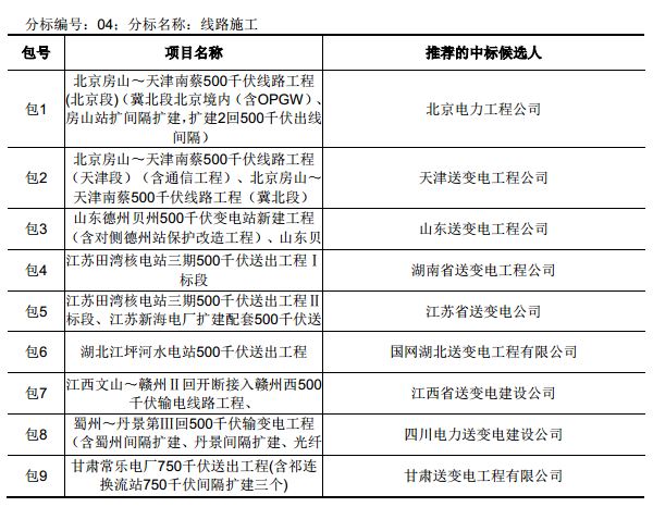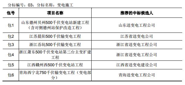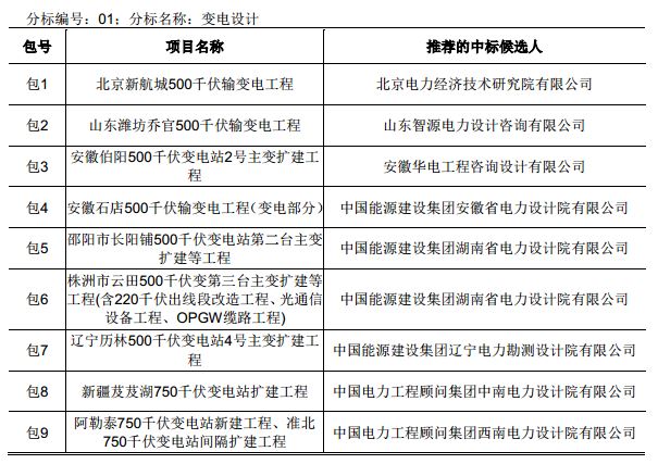 國網輸變電項目2017年第五次設計、施工、監(jiān)理中標結果