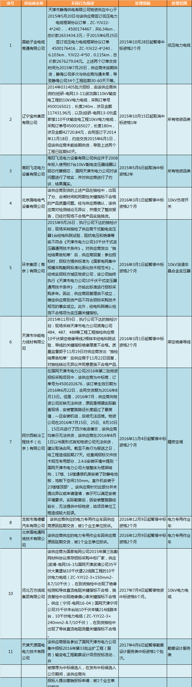國(guó)網(wǎng)天津關(guān)于供應(yīng)商不良行為處理情況的通報(bào)(2017年12月)