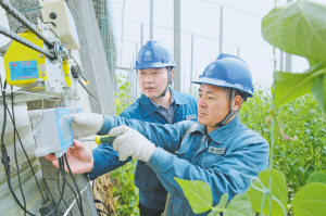 壽光供電公司員工為蔬菜大棚自動溫控系統(tǒng)檢查線路。王磊 攝