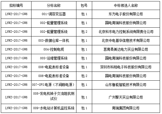 國網(wǎng)黑龍江2017年第六批物資招標采購中標候選人公示
