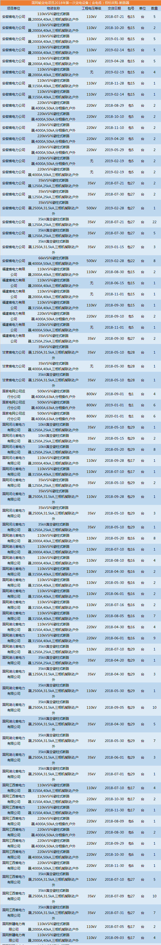 666臺(tái)斷路器 國(guó)網(wǎng)輸變電項(xiàng)目2018年第一次變電設(shè)備(含電纜)招標(biāo)采購(gòu)公告