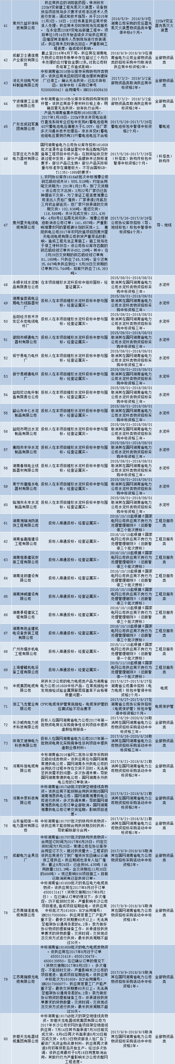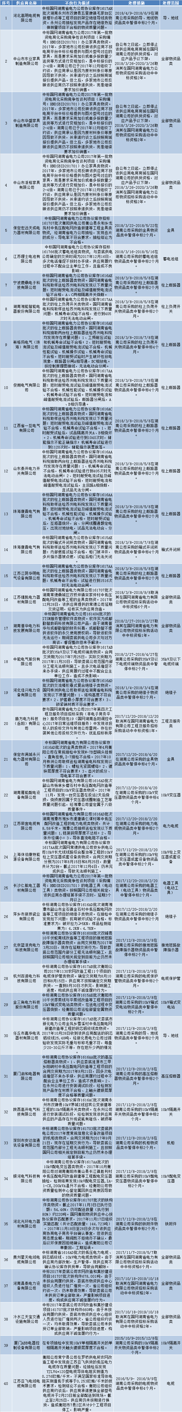 國(guó)網(wǎng)(湖南)通報(bào)的供應(yīng)商不良行為處理情況(2018.4)