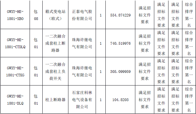 國(guó)網(wǎng)河北省電力有限公司2018 年第一次配網(wǎng)設(shè)備協(xié)議庫(kù)存招標(biāo)推薦的中標(biāo)候選人公示(招標(biāo)批次編號(hào):GWXY-HE-1801)