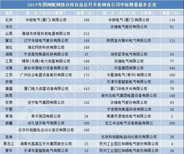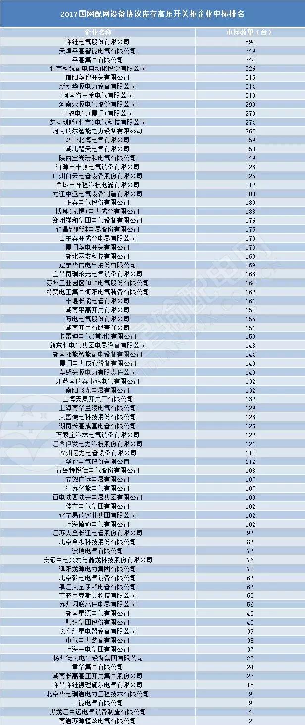 國網(wǎng)2017開關(guān)柜中標(biāo)分析:19省11540臺77企中標(biāo)+許繼電氣594臺領(lǐng)先