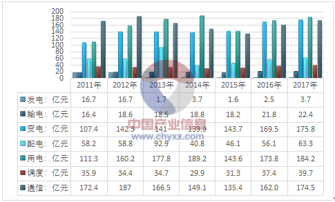 2011-2017年我國(guó)智能電網(wǎng)各細(xì)分領(lǐng)域建設(shè)概況