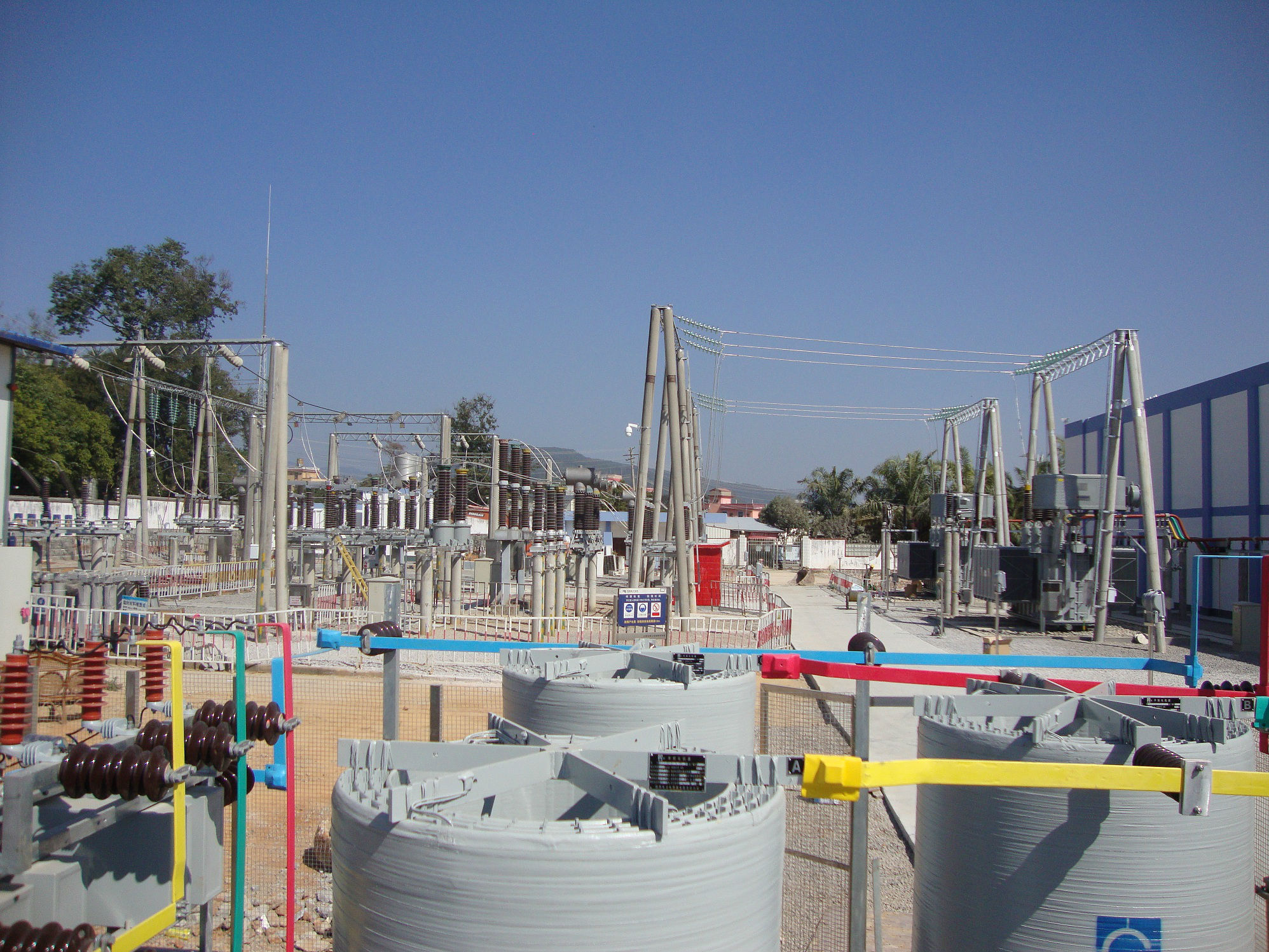 時(shí)間緊、任務(wù)重,全體工程建設(shè)人員加班加點(diǎn)的開(kāi)展工作,大大加快了工程的進(jìn)度。到目前為止,大部分一次設(shè)備及與之相匹配的二次設(shè)備已安裝完畢,設(shè)備測(cè)試工作已完成,兩層的保護(hù)室、高壓室大樓已建成并交付使用,消防系統(tǒng)、保安室已建好,原主控室大樓已拆除,高壓場(chǎng)地清理、碎石鋪墊、路面澆注已大部分完成,最后還剩下臨時(shí)供電部分的拆遷工程及一號(hào)、二號(hào)10kV無(wú)功補(bǔ)償裝置的安裝調(diào)試。在工程建設(shè)過(guò)程中,瑞麗供電局、省網(wǎng)公司領(lǐng)導(dǎo)多次蒞臨變電站檢查指導(dǎo)工作,對(duì)110kV允當(dāng)變電站增容改造工程提出了許多寶貴的意見(jiàn)和建議,保證了工程的順利開(kāi)展。
